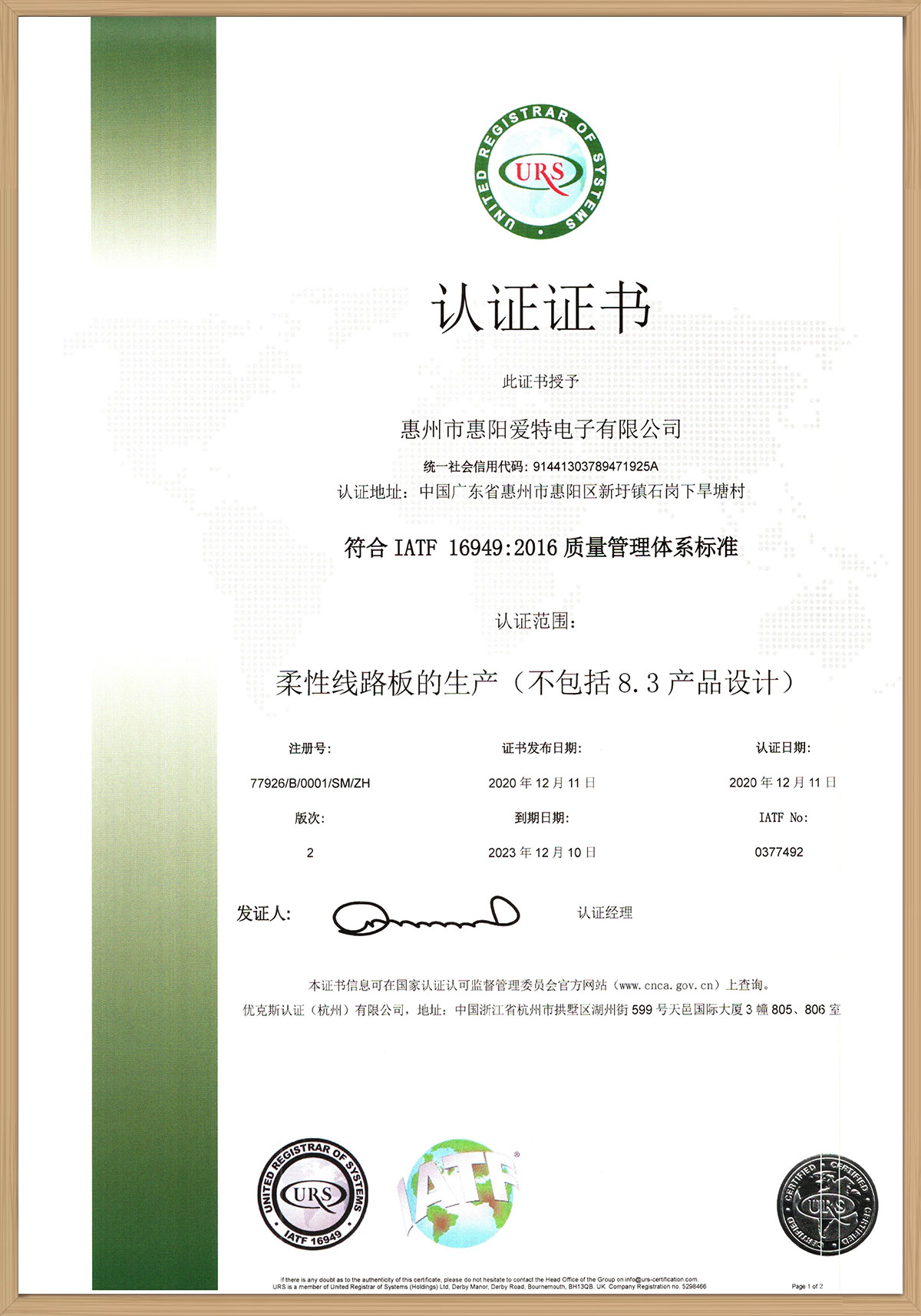 IATF16949證書