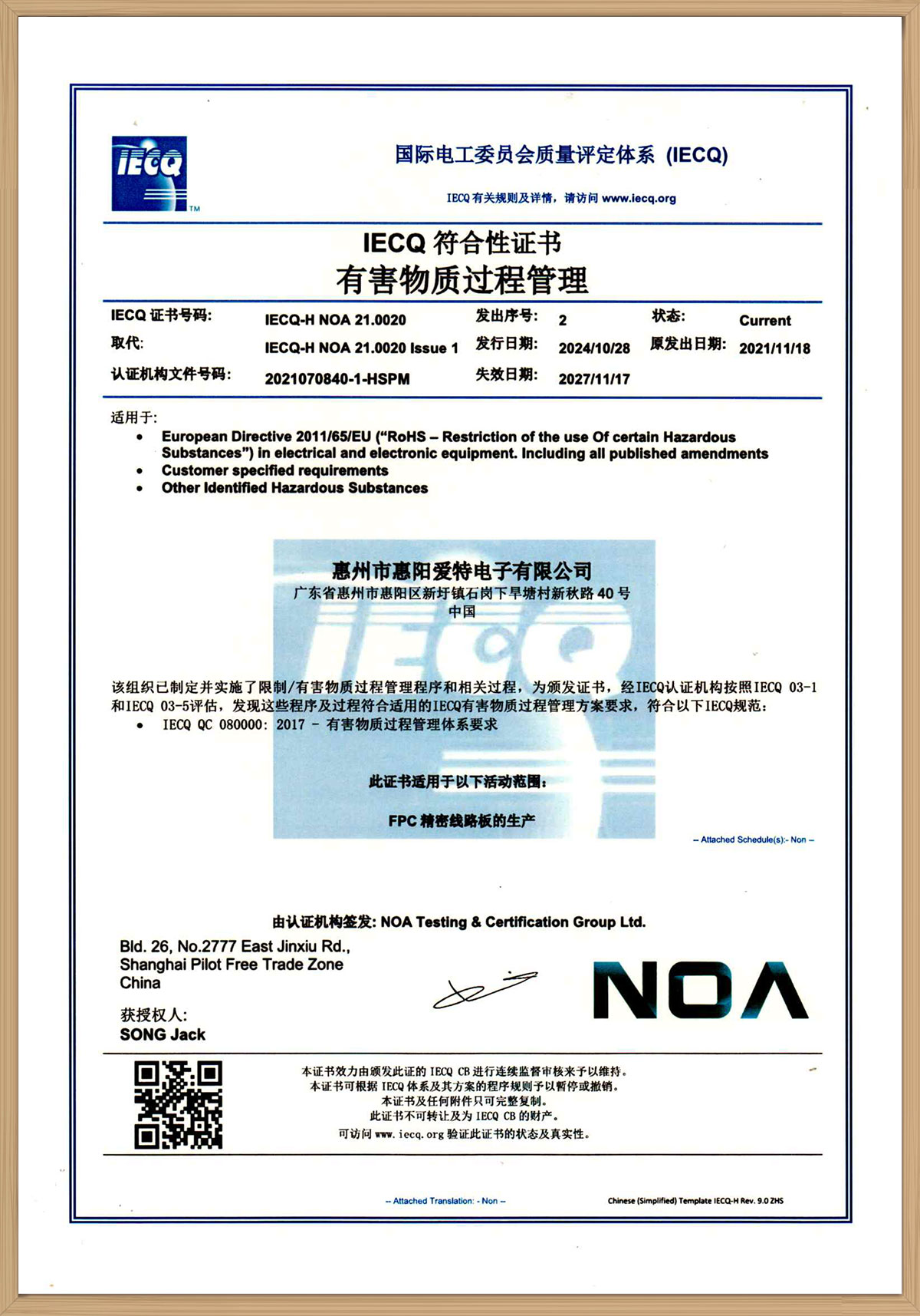 IECQ符合性證書2021版